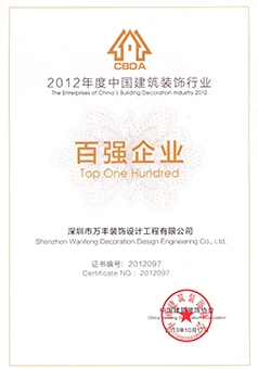 成立至今,集團連續多次獲得”中國建筑行業百強企業”、”全國最有影響力的設計機構”、”企業信用評價三A級企業”、”廣東省守合同重信用企業”等榮譽并且連續20年通過質量管理體系(ISO9001、環境管理體系(ISO14001)、安全認證體系(OHSAS18001)三項權威認證,成為國際標準“三合一 ”體系認證的工程企業。同時也是中國建筑行業協會理事單位、深圳市裝飾行業協會理事單位、中國建筑協會設計委員會副主任單位、中國建筑協會室內設計委員會專家委員單位、中國展覽協會會員單位以及深圳市潔凈協會副會長單位。